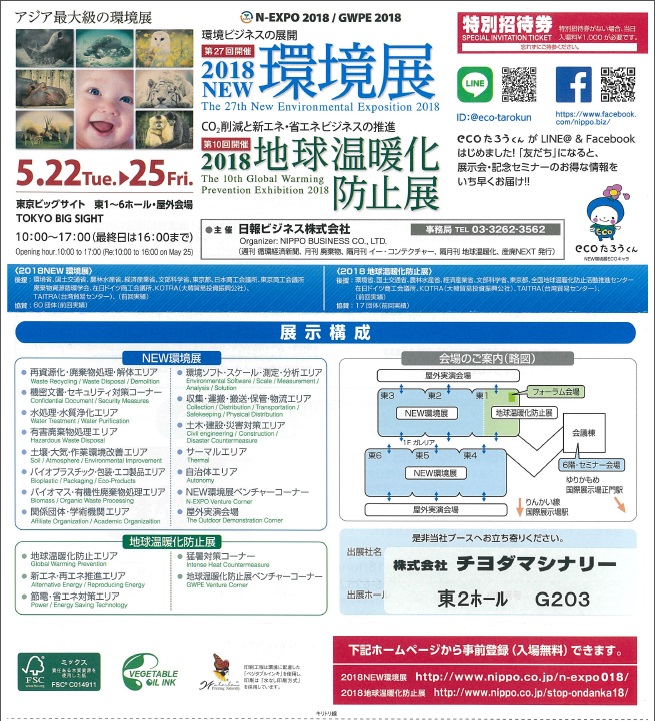グループ企業のチヨダマシナリーが2018NEW環境展に出展致します!
