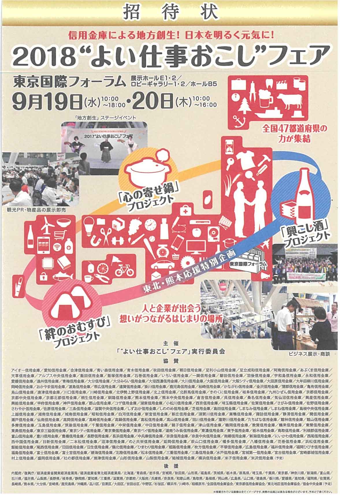 3.2018”よい仕事おこし”フェア 東京国際フォーラム 2018年9月19日(水)、20日(木)